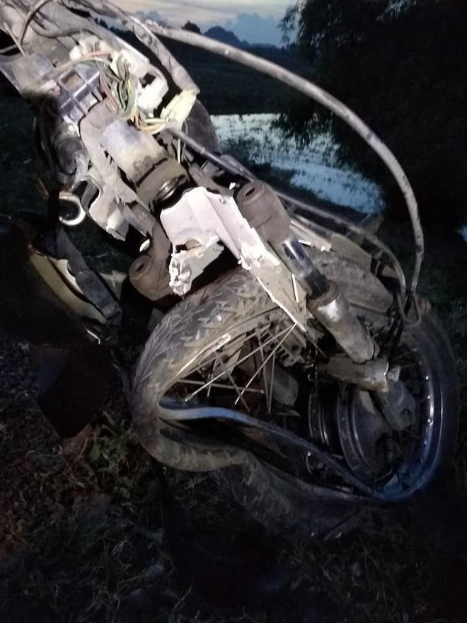 Chiếc xe máy gãy vành sau khi gặp tai nạn vì không kịp tránh 2 trụ bê tông.