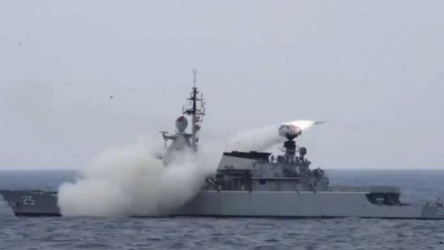 Các tên lửa được bắn từ tàu hộ tống lớp KD Kasturi và trực thăng hải quân Super Lynx. Kasturi bắn tên lửa Exocet MM40 Block II, trong khi Super Lynx phóng một cặp tên lửa chống hạm Sea Skua.