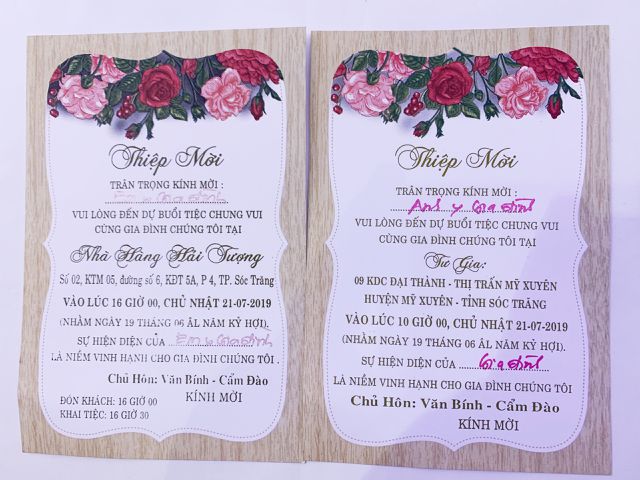 Thiệp mời dự tiệc cưới con trai của gia đình bà Hồ Thị Cẩm Đào.
