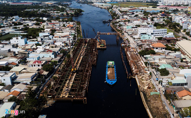 Toàn ảnh cống Phú Định (quận 8) ngăn triều từ sông Cần Giuộc, Chợ Đệm vào kênh Đôi. Ảnh: Lê Quân.