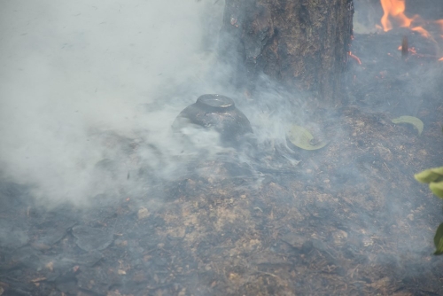 Nắng nóng cộng với gió thổi mạnh nên công tác chữa cháy rất khó khăn. Ảnh: Xuân Hoàng.
