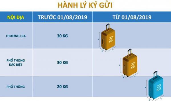 Như vậy điểm khác biệt lớn nhất của chính sách hành lý mới này là khách cần có sự chuẩn bị trước, đóng gói hành lý gọn gàng theo số kiện được quy định hoặc mua thêm. Như vậy, hành lý ký gửi miễn cước nội địa được tăng từ 20kg lên 23kg nhưng hành khách phải đóng gói vào 1 kiện, không để vài ba kiện lẻ tẻ (vali quần áo, thùng hoa quả_._) như trước đây.