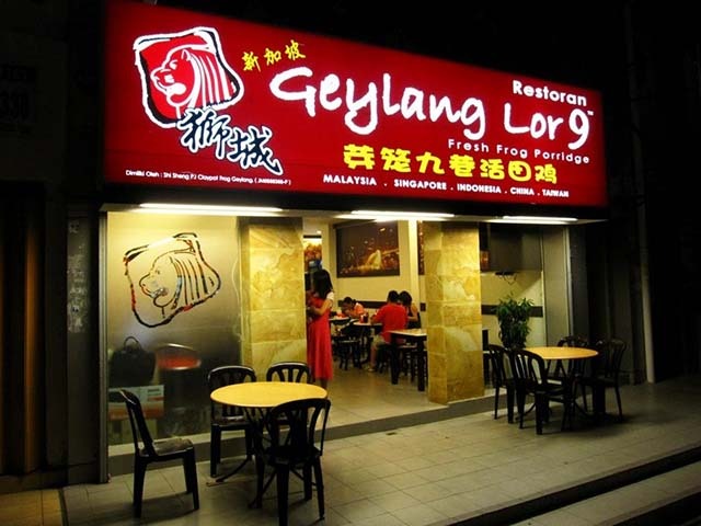 Cháo ếch Singapore là một trong những món ăn nổi tiếng mà hầu hết du khách đến với đất nước này đều thử ít nhất 1 lần. Nổi tiếng nhất phải kể đến quán cháo ếch nằm ở Lorong 9, Lorong 11, Geylang. Cháo ở đây bao gồm một con ếch nấu trong nước tương đậm đặc, có hương vị gồm nhiều loại gia vị như ớt khô hoặc gừng, hành lá và một bát cháo riêng. Cháo được nấu chín, trong khi ếch được ướp và nấu với nước tương. Thịt ếch khi phục vụ cho khách hàng trông rất hấp dẫn, vàng óng, nóng và thơm.