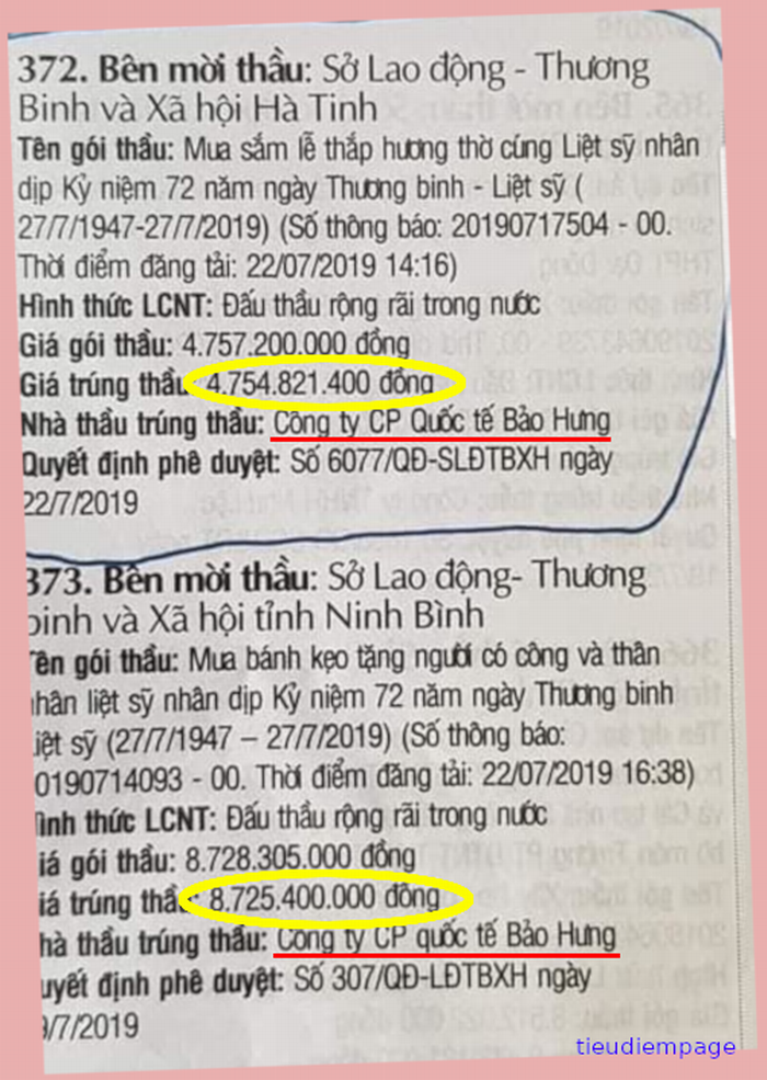 Nước nghèo nhưng xài hoang quá, hay chỉ là chiêu trò tham nhũng? Công ty Cổ phần Quốc tế Bảo Hưng, ai đứng chống lưng đằng sau mà có thể trúng thầu ở cả Hà Tĩnh và Ninh Bình với tổng số tiền lên đến hơn 13,4 tỷ đồng?
