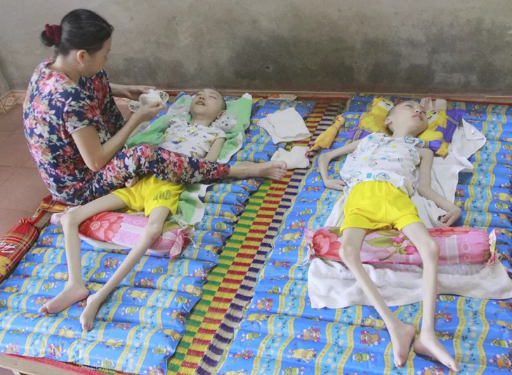 Giữa trưa hè tháng 7 nóng như thiêu, trong ngôi nhà cấp 4 nằm sâu trong con hẻm đường Phạm Thị Liên (phường Kim Long, thành phố Huế), hai anh em song sinh Huy và Hoàng nằm thẳng đuỗn trên tấm đệm hơi giữa phòng khách, nơi mát nhất nhà. Khi bạn cùng tuổi đã vào lớp 6, chạy nhảy nô đùa, thì hai cậu bé chỉ nặng 15 kg, bằng đứa trẻ lên 3, gầy trơ xương, nằm một chỗ chờ mẹ bón.