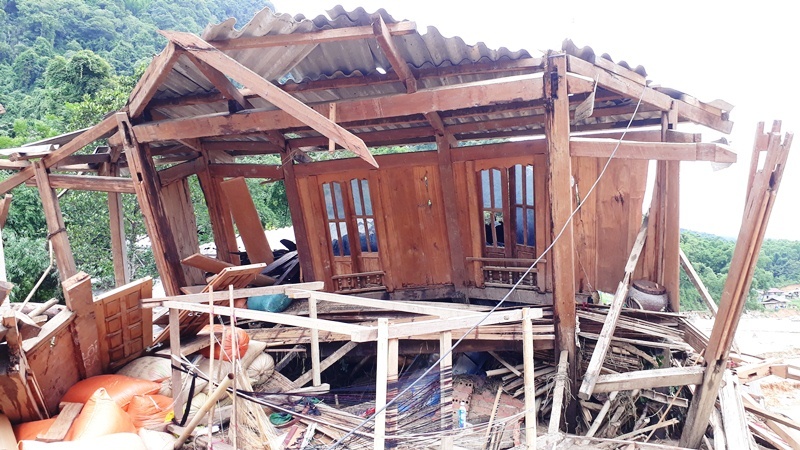 Những ngôi nhà bên bờ suối bị nước lũ cuốn trôi