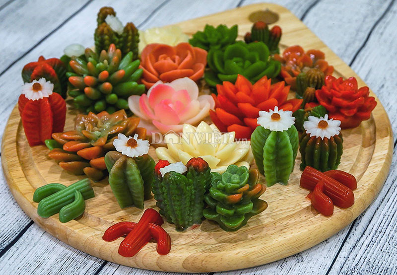 Chia sẻ với phóng viên DANVIET.VN về cách làm thạch rau câu nghệ thuật, chị Bảo Ngân cho biết: “Nguyên liệu làm bánh thạch rau câu sen đá gồm, đường, sữa tươi có đường, bột cốt dừa, agar, các loại trái cây”.