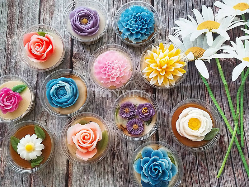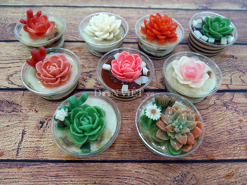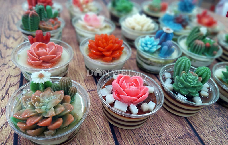 Bà mẹ Nha Trang sở hữu cả một bộ sưu tập khuôn làm thạch để thỏa mãn nguồn ý tưởng dồi dào. Ngoài bánh thạch hoa sen đá, chị Bảo Ngân còn làm nhiều mẫu khác theo yêu cầu từ các khách hàng thân quen của chị... Giá thành của sản phẩm được tính theo kg và phần trang trí thêm nếu như là bánh sinh nhật thì có giá dao động từ 100.000- 150.000đồng/kg và phần trang trí thường là 60.000- 200.000 nghìn tùy theo độ cầu kì và lớn nhỏ của bánh.