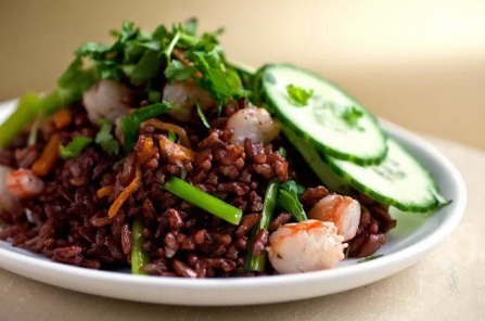 8. Cơm huyết rồng: Món cơm này được nấu từ gạo huyết rồng (gạo lứt), đặc sản của vùng Đồng Tháp. Hạt gạo mẩy, khi nấu thành cơm thì thơm ngậy, càng nhai càng thấy có vị ngọt bùi và béo. Loại gạo này có chất chống oxy hóa và có giá trị dinh dưỡng cao, rất tốt cho trẻ em và phụ nữ. Bạn có thể ăn cơm huyết rồng với muối mè rất ngon miệng.