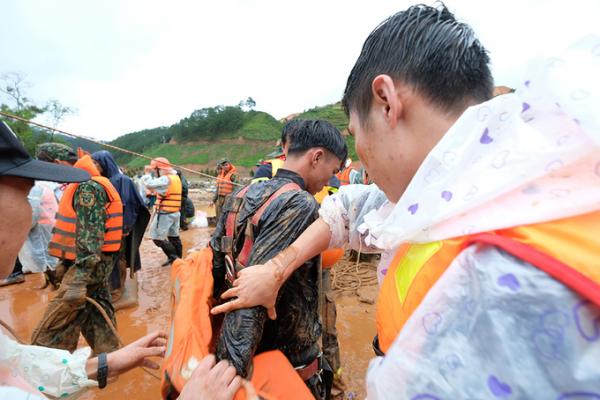 Những khu vực có dòng nước chảy xiết, họ sử dụng dây thừng cố định hai đầu để tiếp cận khu dân cư. Ngày 8/8, trong lúc tham gia cứu hộ, ông Hoàng Minh Tú, công an viên xã Lộc Châu đã chết khi bị nước cuốn trôi.