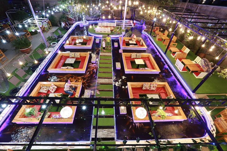 Với lối kiến trúc độc đáo, lọt thỏm giữa một hồ nước, xung quanh là đàn cá koi tung tăng bơi lội, Cafe Vườn Cá đang là điểm check-in hot nhất Biên Hòa trong những ngày qua. Ở đây có cả bàn trên bờ và dưới nước cho bạn lựa chọn nhé. Bạn có thể xin nhân viên thức ăn rồi vừa nhâm nhi cafe vừa chơi đùa với đàn cá.