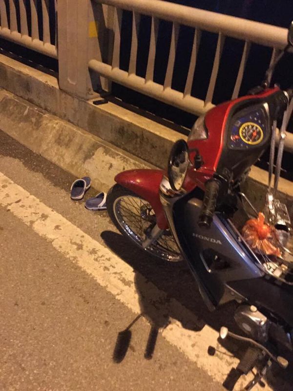 Trước đó, khoảng 21h30 tối 14/6 nhiều người dân đi qua khu vực cầu Vĩnh Tuy (phường Long Biên, quận Long Biên, Hà Nội) phát hiện thấy một xe máy cùng đôi dép trên thành cầu.