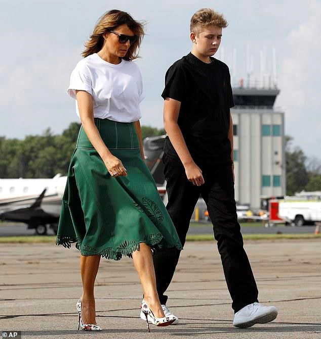 Hôm 18/8, gia đình Tổng thống Mỹ đã trở lại Nhà Trắng sau kỳ nghỉ 2 tuần tại câu lạc bộ golf ở New Jersey. Trong các bức ảnh do phóng viên chụp lại, Barron mặc trang phục đen và đã cao hơn ông bố quyền lực. Tổng thống Donald Trump cao 1,9 m.