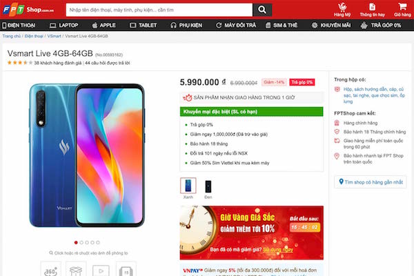 Chiếc điện thoại mới nhất của VinSmart hiện đang có mức giá bán giảm 1 triệu đồng cho phiên bản RAM 4 GB. Tại nhiều đại lý lớn, anh em có thể sở hữu chiếc máy này với mức giá 5,99 triệu, tuỳ vào đại lý còn có mức giá tốt hơn nhờ vào những ưu đãi liên kết với những kênh thanh toán như VNPAY-QR, ưu đãi riêng của nhà bán lẻ.