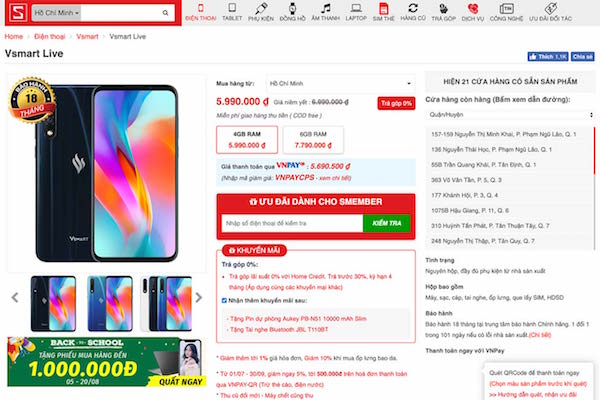 Điện thoại Vsmart Live vừa mới ra mắt đã gây nhiều tranh cãi. Ra mắt chưa được bao lâu, Vsmart Live đang giảm giá mạnh. Chiếc điện thoại phiên bản RAM 4 GB đang có giá ưu đãi 5,99 triệu tại nhiều đại lý lớn.