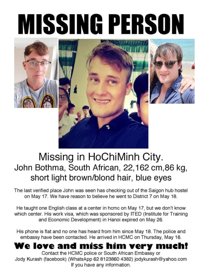 Theo thông tin được News24, một tờ báo Nam Phi, đưa vào hôm 21.8, mẹ của Mushfiq Daniels đã đến Việt Nam để tìm kiếm con trai mình và cho biết bà sẽ không từ bỏ cho đến khi tìm được thông tin.
