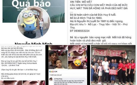 Lợi dụng hoàn cảnh đáng thương của bé trai kém may mắn. Kẻ thất đức đăng ảnh, clip bé Nguyễn Đức Huy bị ung thư võng mạc, hư một mắt để xin cộng đồng mạng hỗ trợ tiền chữa trị. Hắn mạo danh bố bé trai để trục lợi tiền quyên góp.