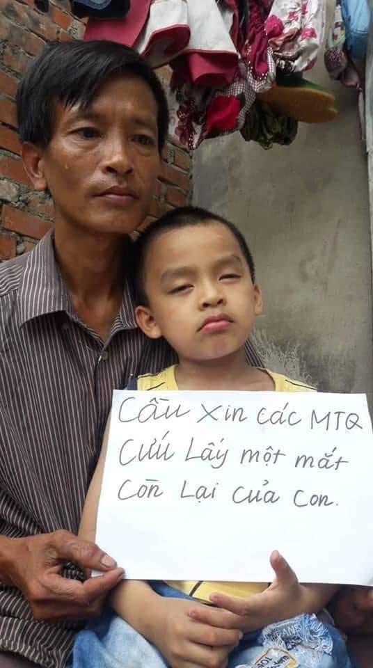 Bé Nguyễn Đức Huy (6 tuổi, ngụ khu 1 xóm Nỗ Lực, xã Thụy Vân, TP Việt Trì, tỉnh Phú Thọ) bị ung thư võng mạc, hư mắt trái nên phải móc bỏ và gắn mắt giả. Hằng ngày, anh Nguyễn Văn Tư (sinh năm 1980) phải lấy mắt giả ra vệ sinh, lau sạch mũ, còn mắt phải đang tiếp tục được điều trị, triệt khối u bên trong thì mới mong ổn định.