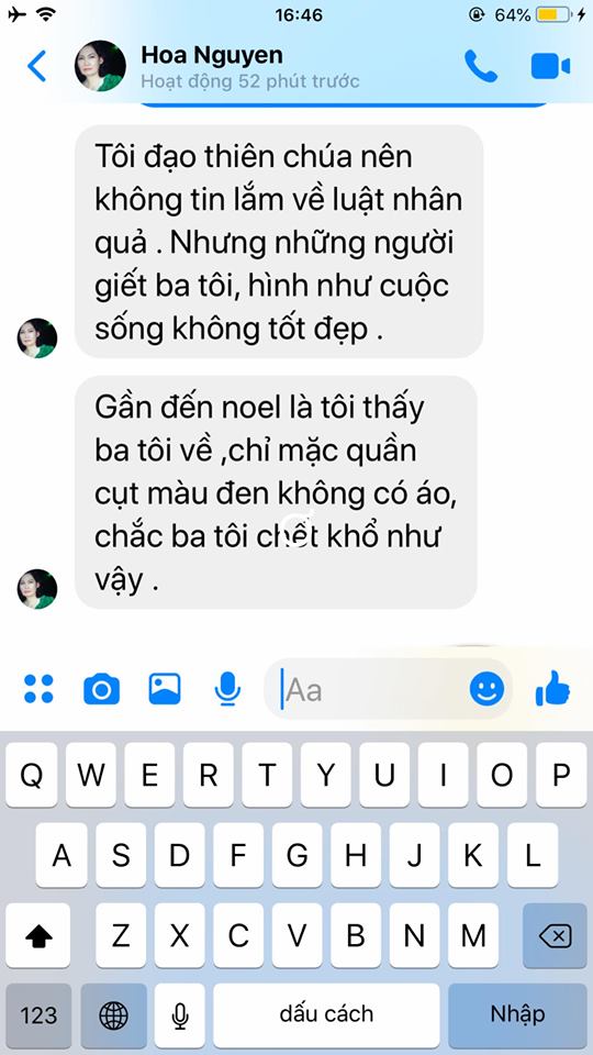 – Hoa Nguyen, ôi thành thật xin lỗi đã gợi lại chuyện đau buồn của gia đình bạn. Cầu mong cho ba của bạn sớm được siêu thoát.