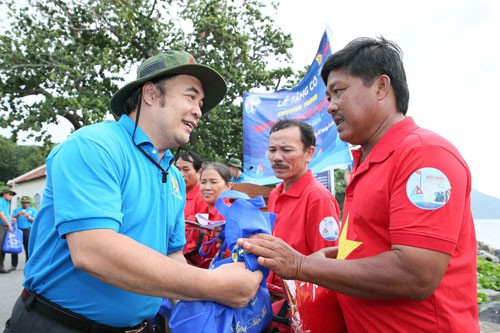 Được nhận cờ tại buổi lễ, ngư dân Đỗ Xuân Thủy (đi biển từ năm 16 tuổi), xúc động: "Mỗi khi ra khơi, lá cờ Tổ quốc không chỉ là nguồn động viên tinh thần mà còn là tín hiệu giúp anh em ngư dân nhận ra nhau, hỗ trợ nhau lúc hữu sự. Cũng nhờ lá cờ Tổ quốc, tàu cá của ngư dân được tàu Cảnh sát biển của chúng ta hỗ trợ kịp thời khi gặp sự cố. Ngoài ra, túi sơ cứu y tế cũng rất hữu ích cho những chuyến biển dài ngày. Chúng tôi nhận thấy đây là chương trình rất ý nghĩa, cảm ơn Ban Tổ chức đã đưa chương trình về với địa phương còn nhiều khó khăn như Côn Ðảo".