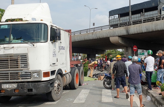 Old  Default TPHCM: Tiếng gào khóc xé lòng của người chồng bên thi thể vợ bị xe container cán tử vong