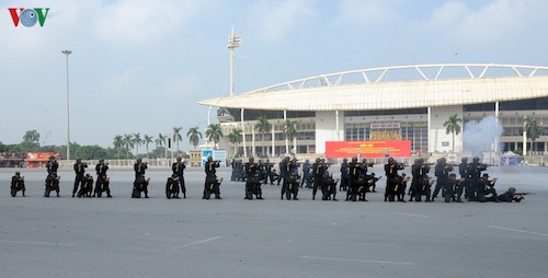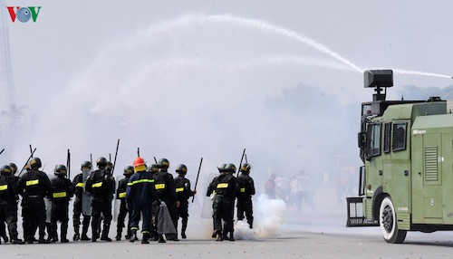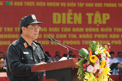 Tại buổi diễn tập thực binh, Trung tướng Đoàn Duy Khương, Giám đốc Công an TP Hà Nội cho biết, trong thời gian qua, tình trạng tụ tập đông người, tuần hành, biểu tình trái pháp luật trên địa bàn TP Hà Nội nói riêng, cả nước nói chung diễn biến phức tạp cả về quy mô và tính chất.
