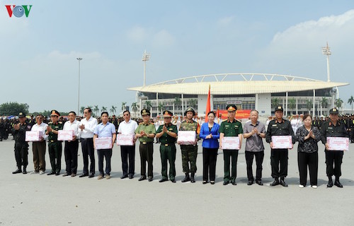 Lãnh đạo tặng quà, động viên các đơn vị tham gia diễn tập thực binh.