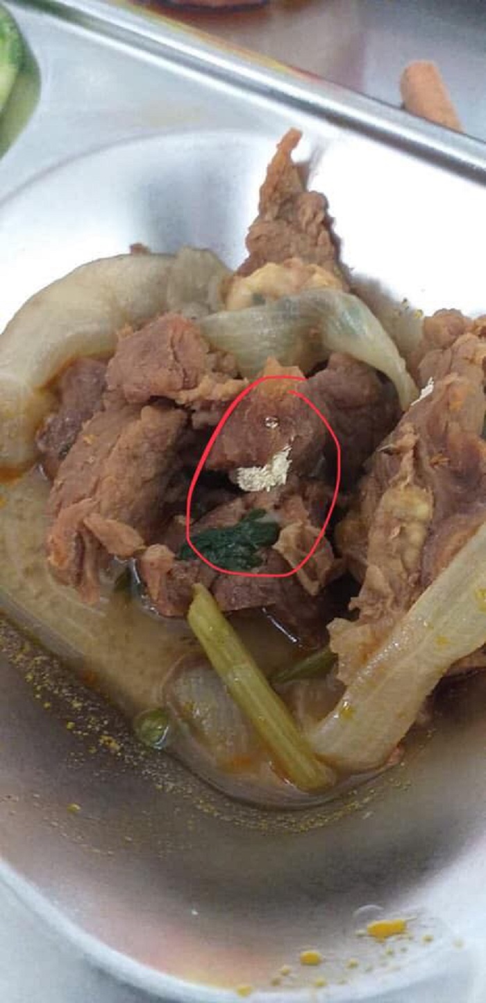 Được biết, suất ăn trưa ngày 17.9 có các món như thịt ḅ, cá viên chiên, canh và nhiều suất có “sinh vật lạ” màu trắng, thậm chí ḅ lúc nhúc.