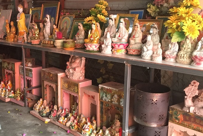 Sau hàng chục năm, hiện nay trong nhà ông, số lượng tượng không thể đếm xuể. Ông xếp thành hàng dọc theo vách. Trên cao là tượng Phật các loại, bên dưới là ông Địa, Thần tài. Đi sâu vào bên trong, ông lưu giữ hàng loạt khánh thờ và trang thờ do chủ nhân của nó không thờ nữa mang đến cho ông.