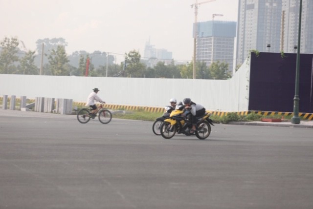 15 giờ chiều 22/9 (chủ nhật), vừa vào đại lộ Vòng cung chúng tôi ngỡ như lạc vào trường đua với những tiếng nẹt pô dồn dập của các quái xế rồ ga chạy bạt mạng.