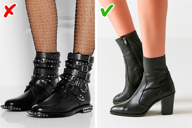 Các chi tiết thắt lưng, đinh tán và gai có thể trông thực sự tuyệt vời, nhưng đôi khi những nhà thiết kế cố gắng thêm càng nhiều yếu tố kim loại càng tốt và điều này làm cho giày không đẹp. Bạn có thể chọn một đôi giày được trang trí bằng một vài chiếc đinh tán, nhưng không nên quá nhiều.