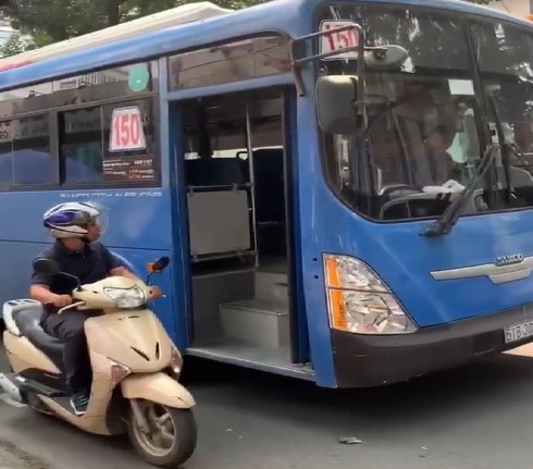 Old  Default TP.HCM: tài xế xe bus ép xe máy, bấm còi inh ỏi, nhổ nước bọt