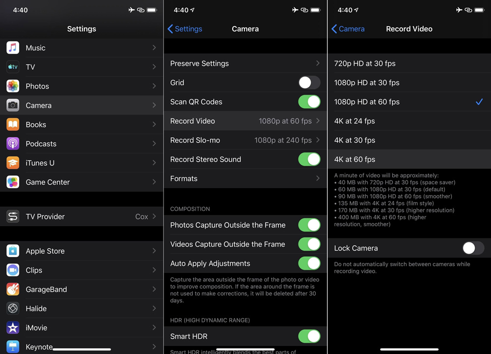Nếu bạn thắc mắc vì sao Apple không bật cài đặt này mặc định, lý do đơn giản là vì video 4K có dung lượng rất lớn. Bởi vậy, nếu Apple bật nó mặc định, và thiết bị bạn sở hữu chỉ có bộ nhớ cơ sở 64 GB, không gian lưu trữ của thiết bị sẽ cạn kiệt nhanh chóng.