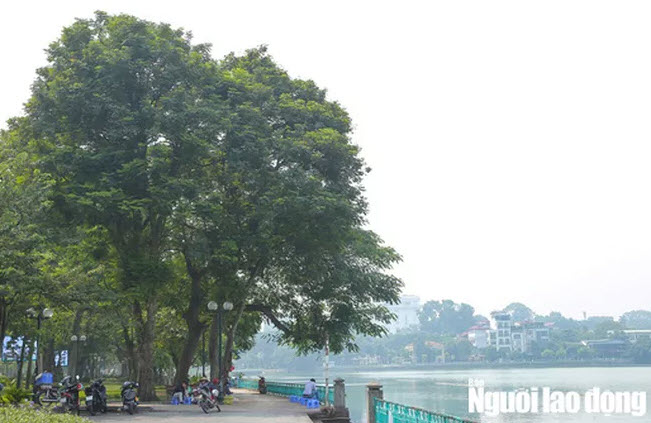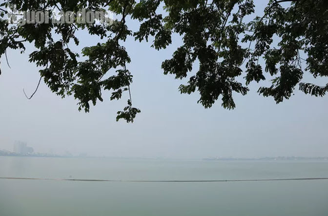 Hình ảnh ở Hồ Tây, nơi có nhiều người tập thể dục buổi sáng, song chỉ số chất lượng không khí cũng ở mức ô nhiễm cao