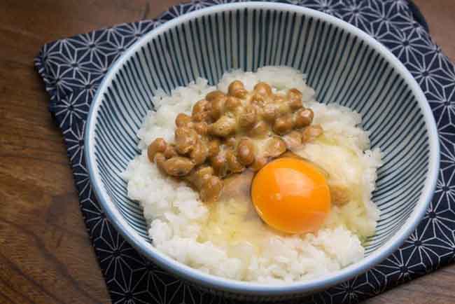 Đây là món trứng sống ăn kèm cơm và đậu natto – một loại đậu nành lên men có kết cấu nhầy nhụa mà không phải ai cũng ăn được. Đập quả trứng sống vào bát cơm có đậu natto sẽ giúp hương vị tuyệt vời.