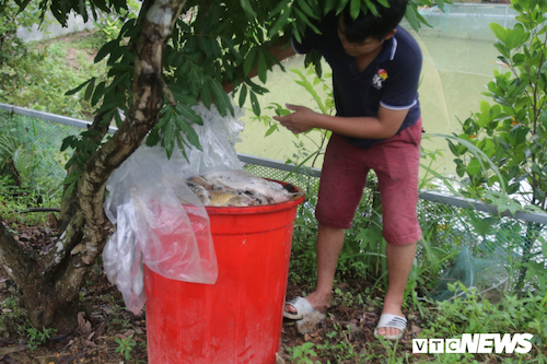 Một hộ dân nuôi cá bị thiệt hại sau khi dẫn nguồn nước nhiễm dầu thải từ suối vào ao.