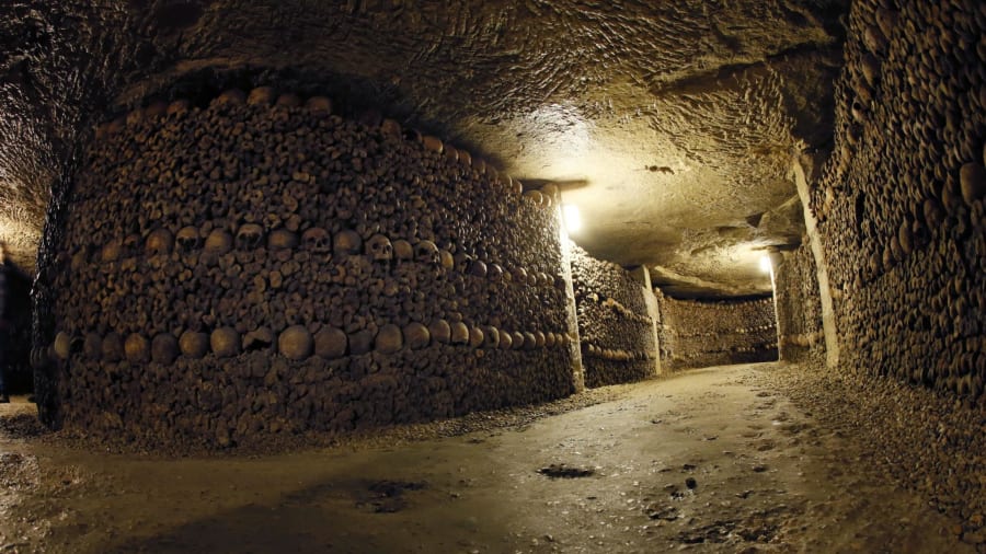 Đây cũng là một trong những điểm tham quan đáng sợ nhất của Paris, nơi có khoảng sáu triệu bộ xương người ở sâu dưới lòng đất, còn sâu hơn cả hệ thống tàu điện ngầm và hệ thống thoát nước. Hầm mộ này được tạo ra để chứa các thi thể từ thế kỷ thứ 18.