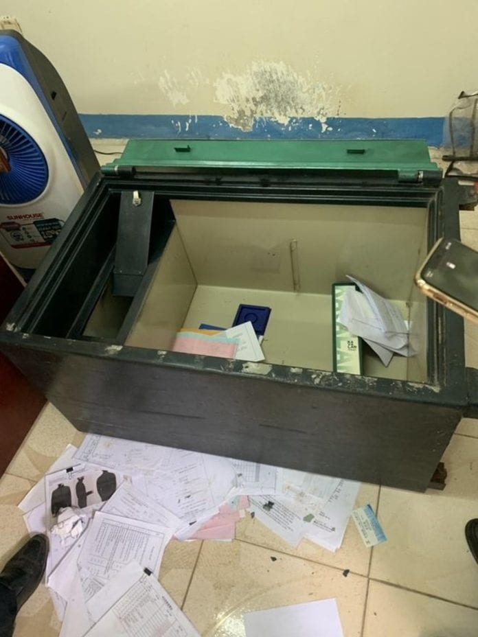 Két sắt một công ty bị nhóm trộm người Tầu cạy phá để trộm tài sản. (Hình: CAND
