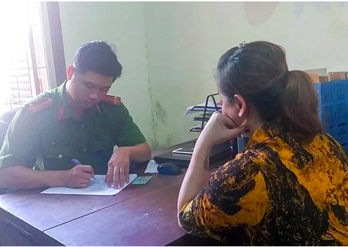 Cảnh sát lấy lời khai của một phụ nữ trong quán bar. Ảnh: Ngọc Trường