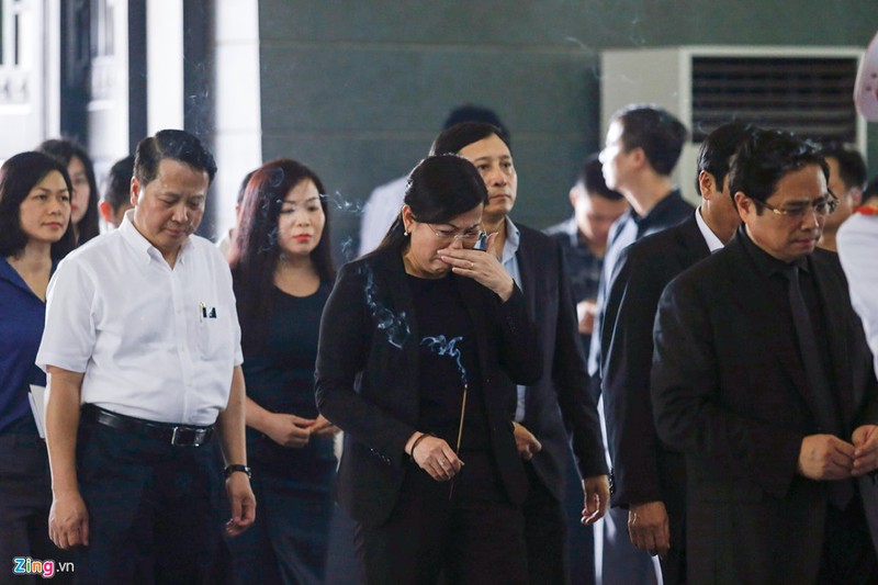 Trưởng Ban Tổ chức Trung ương Phạm Minh Chính và bà Nguyễn Thanh Hải, Trưởng Ban Dân nguyện Quốc hội, đến viếng, tiễn đưa ông Lê Hải An. Ảnh: ****.vn.