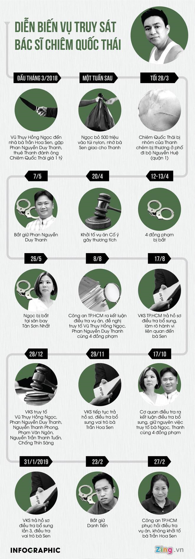 Dàn cảnh truy sát bác sĩ Chiêm Quốc Thái ở TP.HCM Vũ Thụy Hồng Ngọc thuê Phan Nguyễn Duy Thanh đánh dằn mặt, gây thương tích cho bác sĩ Chiêm Quốc Thái giá một tỷ đồng. Kết quả ông Thái bị chém với thương tích 5%.