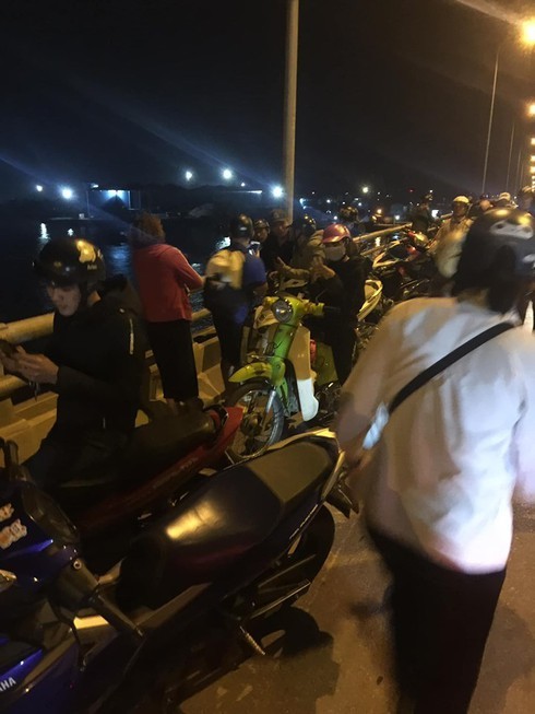 Trên cầu Khuể rất đông người theo dõi vụ việc