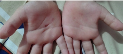Bàn tay có những vết đâm của bé trai 5 tuổi.