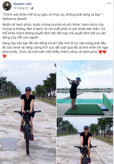 Những hình ảnh này được Shark Liên chia sẻ kèm với nội dung: “Chính sức khỏe mới là sự giàu có thực sự, không phải vàng và bạc” - Mahatma Gandhi.