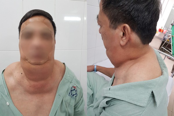 TS Đàm Trọng Nghĩa, Trưởng khoa Ngoại Đầu cổ, BV Ung bướu Hà Nội, chia sẻ nam bệnh nhân có tiền sử bệnh tim mạch, men gan cao nên quá trình gây mê khá phức tạp. Tổ chức mỡ lan tỏa rộng, bao toàn bộ khí quản, thực quản nên khi phẫu thuật phải tính toán để tránh những nguy cơ nguy hiểm như tổn thương khí quản, thực quản, các mạch máu lớn, dây thần kinh vùng cổ.