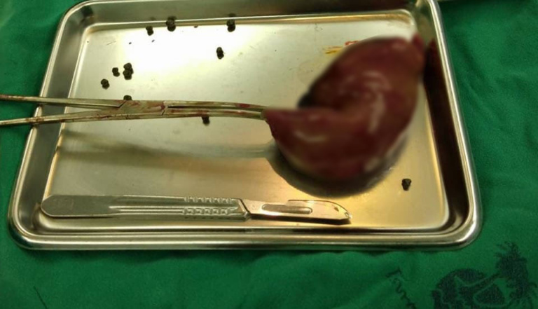 Những viên trân châu gây viêm nghiêm trọng ở túi mật, khiến nó gần như chứa đầy mủ. Hóa ra, bệnh nhân đã phải chịu đựng tình trạng này trong suốt 5 năm mà không nhờ tới sự trợ giúp y tế. Các bác sĩ tự hỏi là làm sao bệnh nhân có thể chịu đựng được điều này. Túi mật gần như bị hỏng hoàn toàn nên bác sĩ đã cắt bỏ nó.
