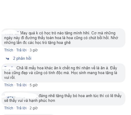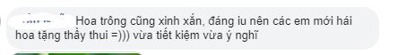 Ngay sau khi được chia sẻ,bài viết đã gây bão trên mạng xã hội vì sự hài hước đến từ món quà đặc biệt trên. Không ít người để lại bình luận đùa rằng chắc trước đó thầy giáo này đã phạt hay cho học sinh điểm kém nên bị “ghim”. Tuy nhiên nhiều cư dân mạng cho biết, có thể các em còn bé, ngây thơ, thấy hoa đẹp nên hái tặng thôi chứ không hề có ác ý gì.