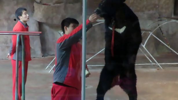 Theo Daily Star, con gấu bị ép phải nhảy theo nhạc tại vườn thú Bifengxia, thành phố Ya'an, tỉnh Tứ Xuyên, Trung Quốc. Video do một nhóm hoạt động vì quyền động vật chia sẻ lên mạng xã hội.