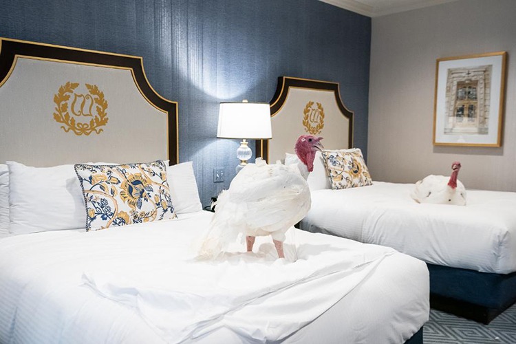Hai con gà tây trong phòng khách sạn Willard ở thủ đô Washington. Ảnh: White House.