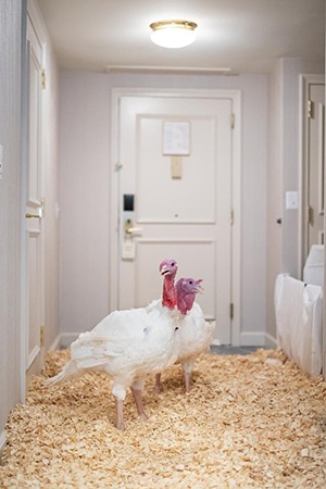 Hai chú gà Tây này đang chờ tổng thống Donald Trump đến xá tội ở khách sạn Willard ở thủ đô Washington. Hai con gà tây được đưa từ bang Bắc Carolina tới một khách sạn 5 sao ở Washington chờ Trump xá tội nhân Lễ Tạ ơn tại Nhà Trắng.